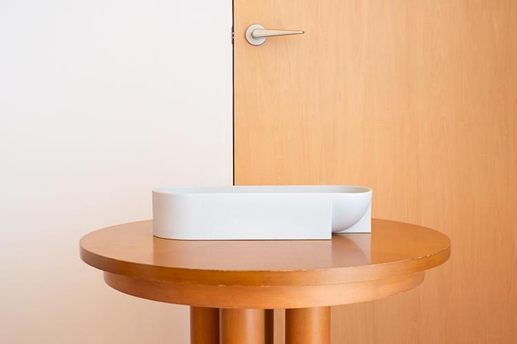 オブジェのような小物入れはフィリップ・マロインによってデザインされました。作品名のKuruはフィンランド語で「山あい」を意味。バウハウスを彷彿させる幾何学的なデザインで、インテリアに落ち着きや静けさのようなものをもたらす作品です。