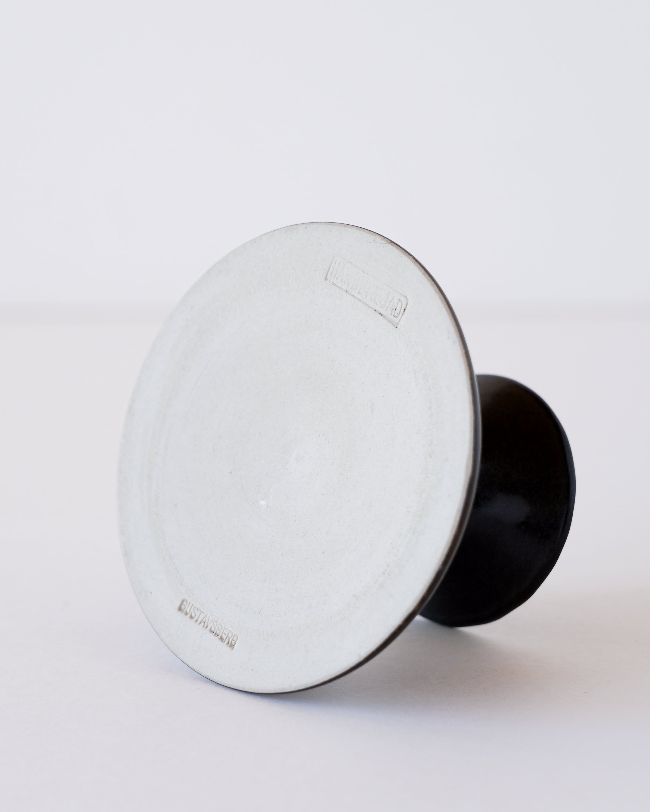 1950~60年代に生産したと思われるキャンドルホルダーはBerndt Fribergによってデザインされました。プリミティブなフォルムで、細い白いラインが印象的なデザインに仕上がっています。小ぶりながらも力強い作風で、轆轤で制作するシリーズとは異なるエッジの効いた逸品です。